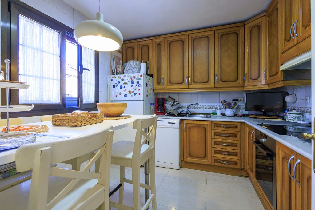 La entrada principal de la vivienda da paso a un hall de entrada, cocina totalmente equipada ( campana extractora, vitrocerámica, lavavajillas y horno).