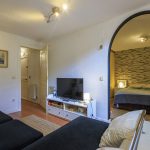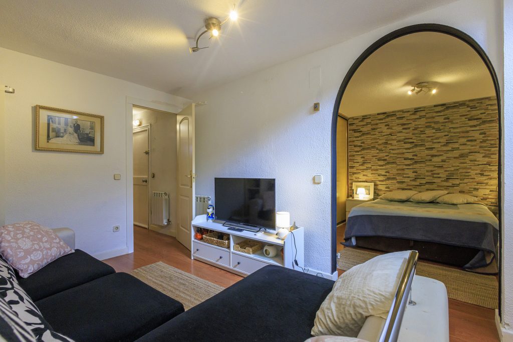 Hay un hall de entrada con puerta de garaje y entrada directa a la vivienda, que da paso a una gran habitación-salón y un dormitorio. (Es la habitación más fresca en el verano). Y lavadero,